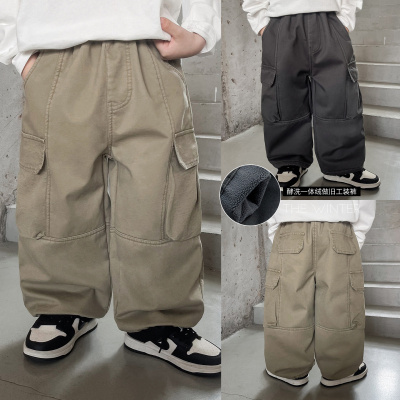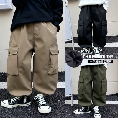 童酷儿童冬款湖州织里童装韩版加厚长裤纯色一体绒男童工装裤