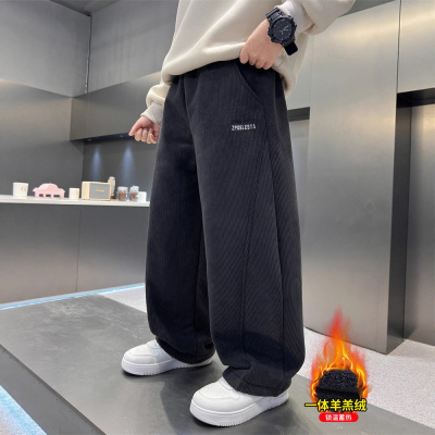 男童加绒裤子秋冬款新款大儿童装一体绒直筒阔腿裤灯芯绒冬装