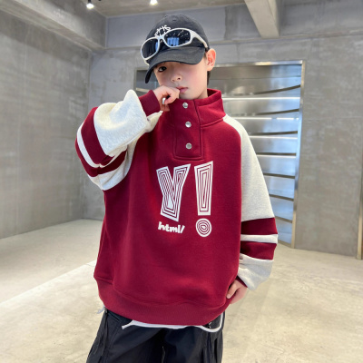 儿童装男童加绒卫衣秋冬款新款红色过年男孩加厚冬季立领上衣