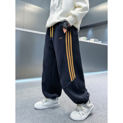 儿童装男童加绒裤子新款秋冬款男孩中大童冬季加厚运动卫裤潮