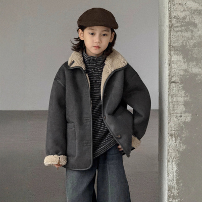 男童加绒外套秋冬款新款男孩冬装中大儿童装冬季加厚羊羔绒潮