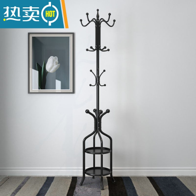 敬平大理石衣帽架落地卧室挂衣架房间立式衣服架子简约现代家用晾衣架 升级款-16钩带花架-亮黑色
