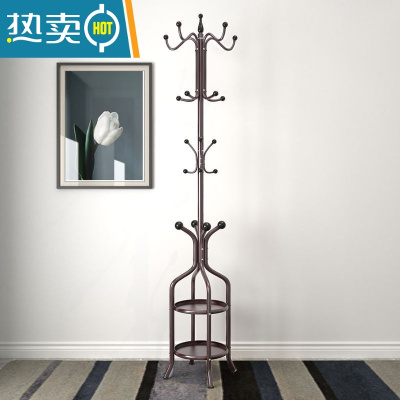 敬平大理石衣帽架落地卧室挂衣架房间立式衣服架子简约现代家用晾衣架 升级款-16钩带花架-磨砂棕