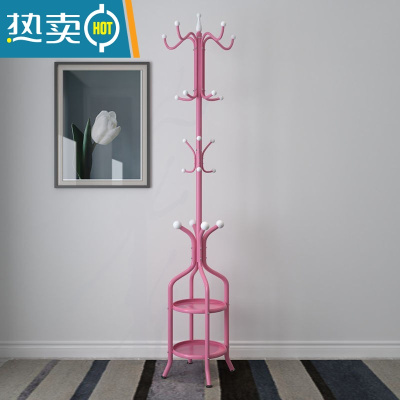 敬平大理石衣帽架落地卧室挂衣架房间立式衣服架子简约现代家用晾衣架 升级款-16钩带花架-亮粉色