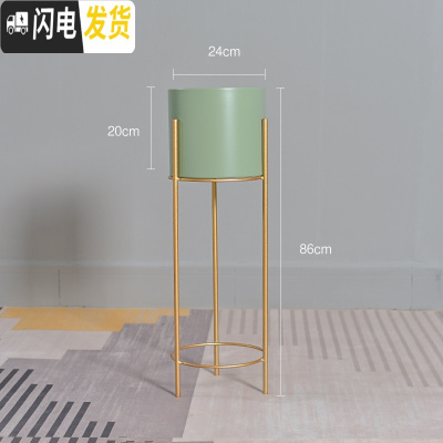 三维工匠北欧简约铁艺落地式客厅金属花盆装饰摆设绿萝植物花架花瓶摆件大 大号绿色桶+金色架 中花盆容器