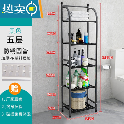 敬平置物架落地铁艺浴室角架卫生间卧室多层厨房收纳储物架花架层架 C款:五层黑色[长34*宽29*高142CM]