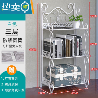 敬平置物架落地铁艺浴室角架卫生间卧室多层厨房收纳储物架花架层架 D款:三层白色[长34*宽21*高65CM]可