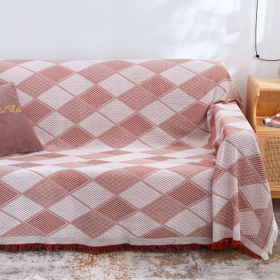 家柏饰(CORATED)北欧方格全盖沙发布单沙发巾沙发套罩沙发垫盖布沙发毯 藕粉方格 230*340cm