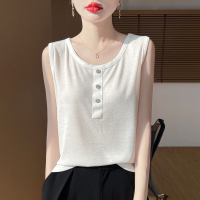 精纺细腻女装吊带背心2025夏季外穿内搭工字打底白色宽松黑色上衣
