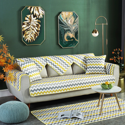 北欧条纹沙发垫子色时尚现代简约布艺套罩巾三人小户型四季通用