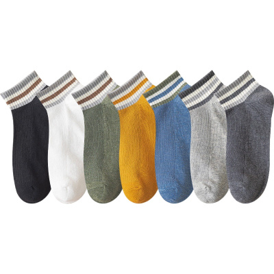 俞兆林[十双装]袜子男春夏季棉质韩版吸汗透气短筒袜罗口条纹灰百搭个性休闲船袜
