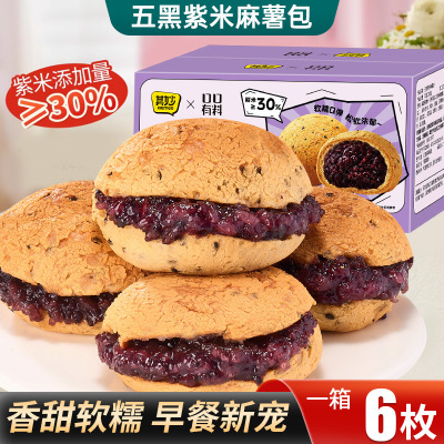 300g*2箱 五黑紫米麻薯包爆浆夹心面包球黑米泡芙整箱正宗早餐速食网红零食