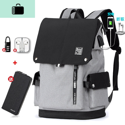 男士双肩包大学生潮牌大容量旅行背包高中初中学生书包男时尚潮流NEW LAKE 灰色升级版(送密码锁+耳机+钱包)