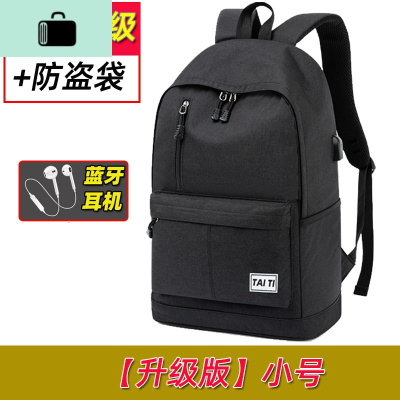 新款双肩包男背包高中大学生书包男士时尚大容量潮流休闲简约旅行NEW LAK 小号黑色[升级版]配蓝牙耳机背部加强+防盗袋