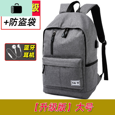 新款双肩包男背包高中大学生书包男士时尚大容量潮流休闲简约旅行NEW LAK 大号灰色[升级版]配蓝牙耳机背部加强+防盗袋