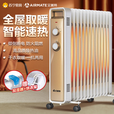 艾美特(AIRMATE)电热油汀取暖器家用2200W功率 13片加宽汀片加湿烘衣一体电热油汀 WU13-X5 机械款
