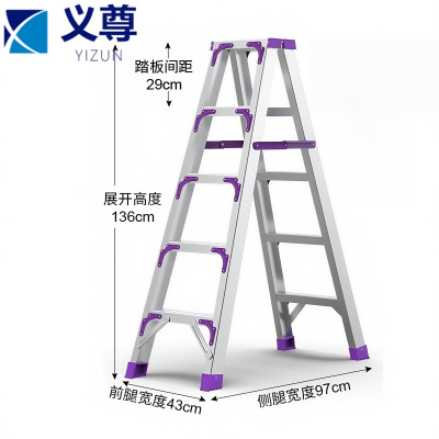 翌嘉YJ-20159铝合金人字梯家用折叠梯双面扶梯五步梯1.5米