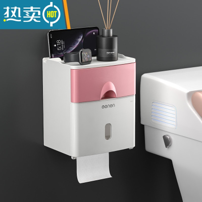 敬平卫生间纸巾盒防水免打孔壁挂式厕所抽纸盒卷纸盒洗手间纸巾置物架 优雅粉[双层]