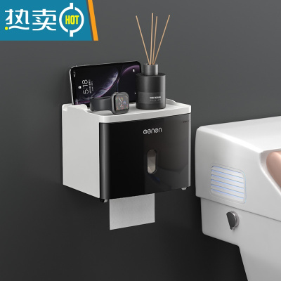 敬平卫生间纸巾盒防水免打孔壁挂式厕所抽纸盒卷纸盒洗手间纸巾置物架 时尚黑[双层]