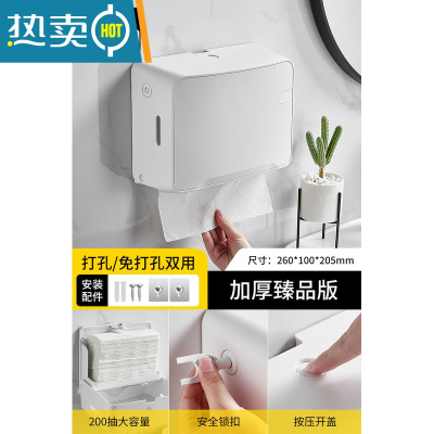 敬平擦手纸盒壁挂式厕所纸巾盒免打孔卫生间抽纸盒洗手间干手纸盒商用 匠心加厚臻品白色-打孔