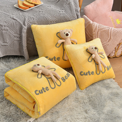 新款牛奶绒立体熊抱枕被靠枕多功能空调折叠被办公汽车二合一
