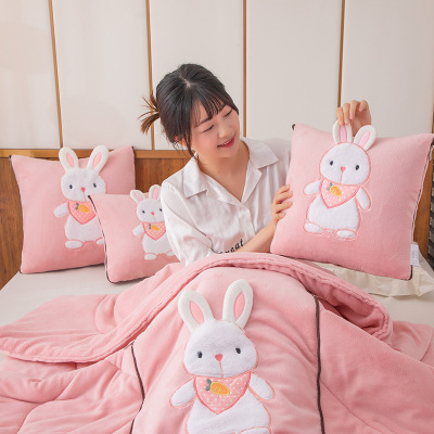 新款牛奶绒贴布绣抱枕被加厚保暖多功能办公室午睡被萌兔兔