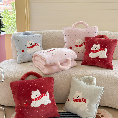 牛奶绒围巾小狗二合一两用抱枕被车载抱枕便携被子枕午靠垫被