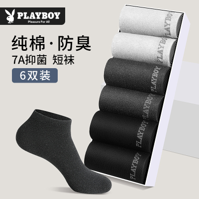 花花公子男士袜子男款纯棉短袜吸汗防臭全棉短筒男袜7a抗菌船袜男