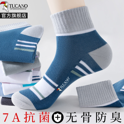[7A抗菌]啄木鸟袜子男款短袜夏季薄款防臭吸汗纯棉纱男士夏天运动隐形袜