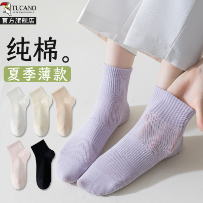 诸暨袜子女夏季薄款网眼透气纯棉纱线中筒袜2025新款运动短袜
