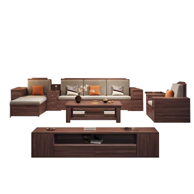 中式黑胡桃木实木沙发客厅储物沙发茶几电视柜组合布艺实木沙发