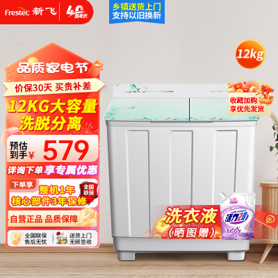 新飞(Frestec)12公斤半自动家用双缸洗衣机 节能 洗脱分离 大容量洗衣机 XPB120-1600GD