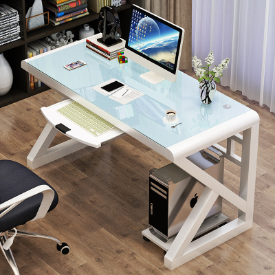 戴劲 电脑台式桌家用简约现代经济型书桌简易钢化玻璃电脑桌学习桌子 加厚120*60*75全白+键盘托
