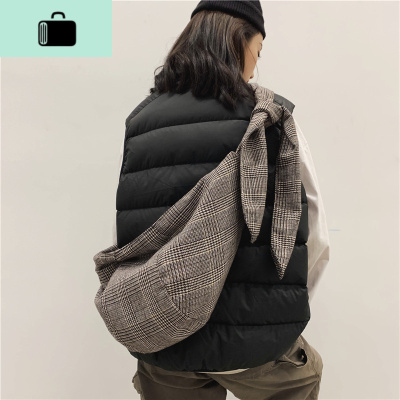 情侣ins街头男女百搭复古格子饺子包打结斜挎单肩包休闲布袋包包NEW LAKE女斜挎包