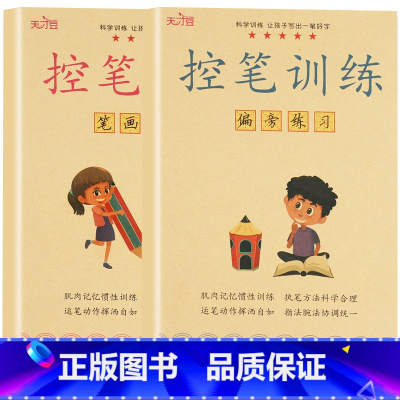 控笔训练-笔画+偏旁 全2册 [正版]幼儿控笔训练字帖幼儿园点阵笔画笔顺练字贴学前班初学者入门数字练字控笔训练拼音描红儿