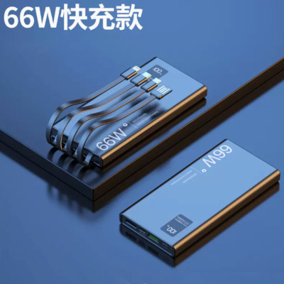 慈慈 自带线超薄便携小巧充电宝 带4线+双向超级快充 20000mAh 湖水蓝
