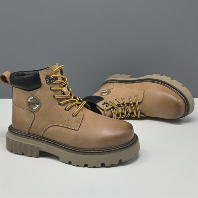 男生头层牛皮百搭户外休闲鞋欧洲站复古真皮马丁靴厚底增高皮靴男