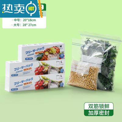 敬平保鲜袋密封袋加厚家用冰箱塑封袋袋自封袋带封口分装袋 加厚款-大号[15只] 1