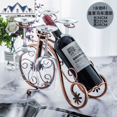 红酒杯架摆件家用中式酒柜展示装饰品葡萄酒创意欧式红酒瓶架摆件 迅游马车升级挂4杯款[含图片中酒杯] 三维工匠