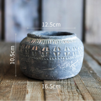 家柏饰(CORATED)非洲艺术老罐 复古工艺水泥罐坛子花瓶花盆花器民族风 绳纹罐(小)需打孔请备注 大