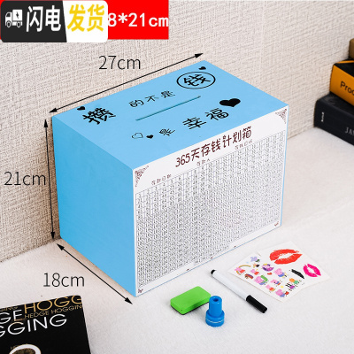 三维工匠存钱罐儿童实木大容量储钱罐365天只进不出创意网红大号储蓄罐 超大号-蓝色[攒的不是钱]实木
