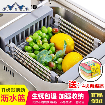 水沥水篮 厨房置物架 304不锈钢沥水架伸缩滤水篮水池架碗碟架 三维工匠
