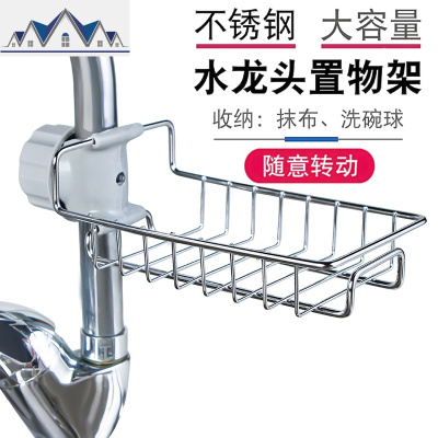 厨房不锈钢海绵洗碗布整理架沥水置物架水龙头架子水池抹布收纳架 三维工匠