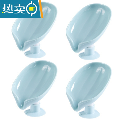 敬平叶子香皂盒家用沥水收纳盒卫生间免打孔肥皂碟洗衣台水池肥皂架物 淡绿色四只装