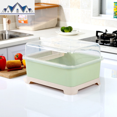 家用碗柜塑料沥水碗架厨房放碗架碗筷收纳盒盘碗沥水架带盖加大号 三维工匠收纳层架