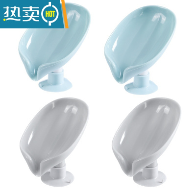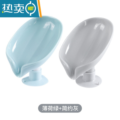 敬平叶子香皂盒家用沥水收纳盒卫生间免打孔肥皂碟洗衣台水池肥皂架物 灰色一只+淡绿色一只
