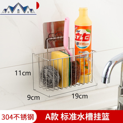 水漕沥水架厨房钢丝球洗碗海绵百洁布收纳架304不锈钢挂篮沥水篮 三维工匠