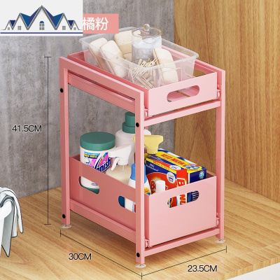 厨房置物架落地台面双层整理架橱柜下用品抽拉式水池水下收纳架 三维工匠