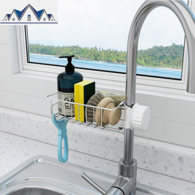 厨房收纳水龙头不锈钢置物架海绵沥水篮水池水洗碗抹布挂篮 三维工匠