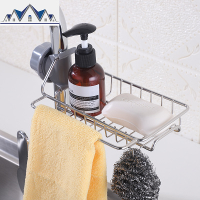 不锈钢厨房水龙头置物架免打孔夹式水沥水抹布收纳挂篮水池 三维工匠
